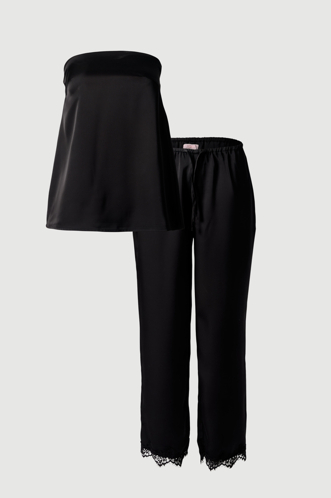 SATIN BANDEAU TOP AND LACEY PANTS (BUNDLE)